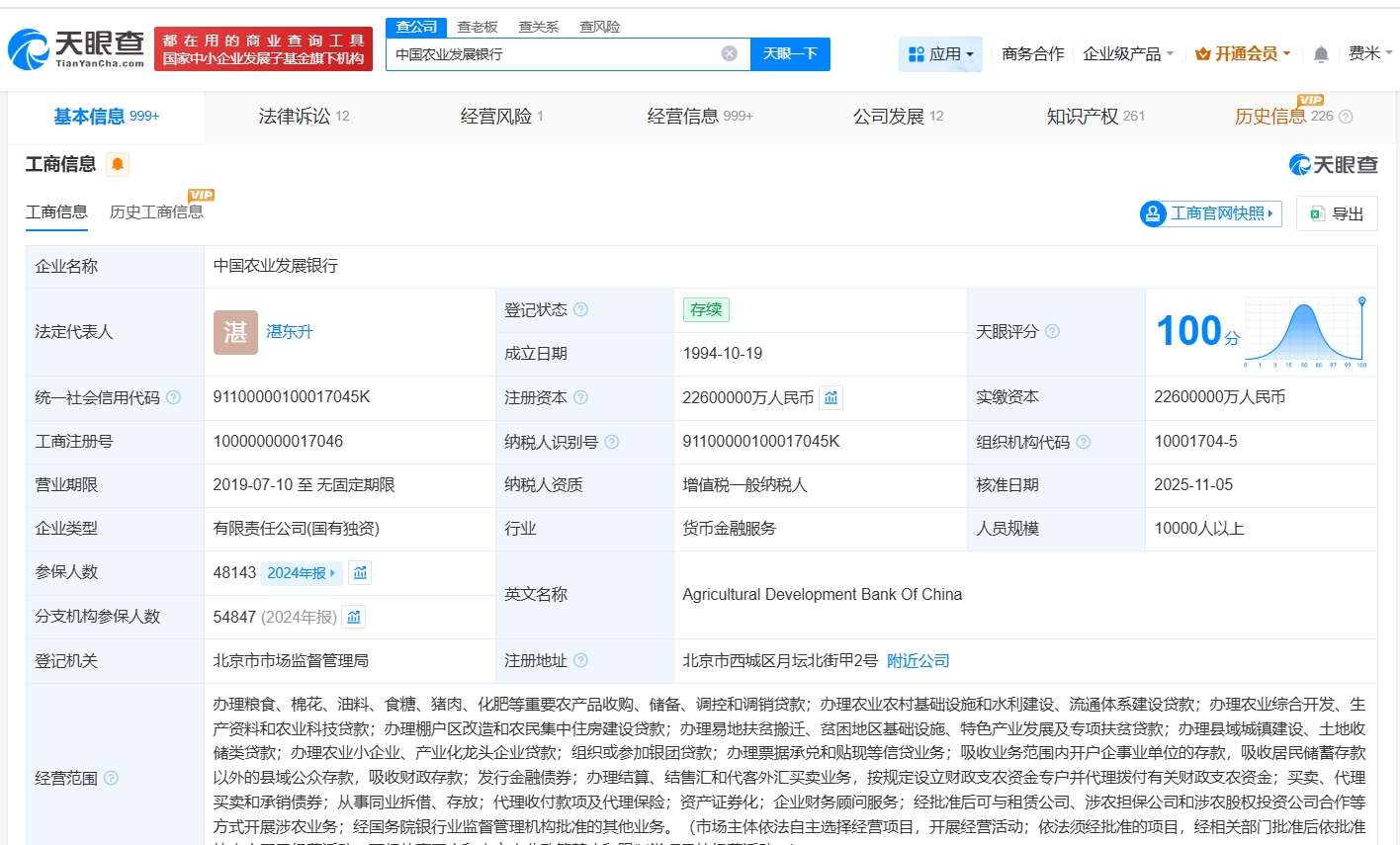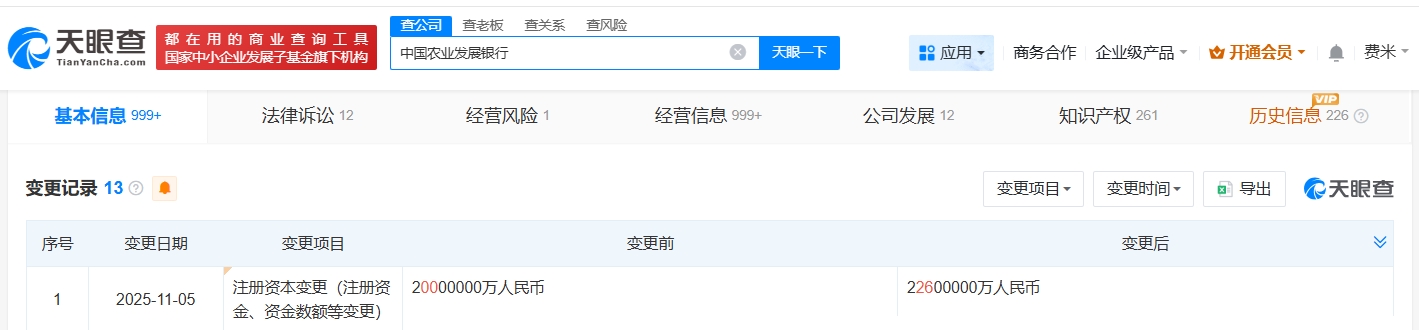 每經AI快(kuai)訊,天眼查(cha)工商(shang)信息顯示,近(jin)日,中國(guo)農(nong)業(ye)發展銀(yin)行發生工商(shang)變(bian)更,注冊資(zi)本由2000億元(yuan)人(ren)民幣(bi)增(zeng)至2260億元(yuan)人(ren)民幣(bi),增(zeng)幅(fu)13%。中國(guo)農(nong)業(ye)發展銀(yin)行成(cheng)立(li)于1994年10月,法定(ding)代表人(ren)為湛(zhan)東(dong)升,經營范圍包括辦理糧食、棉花、油料、食糖、豬肉、化肥(fei)等重要農(nong)產品收購、儲備(bei)、調控和(he)調銷貸款等。