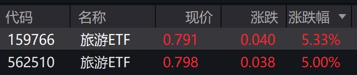 受盤(pan)面影(ying)響,跟蹤中(zhong)證旅(lv)游主(zhu)題指數的旅(lv)游ETF漲約5%。