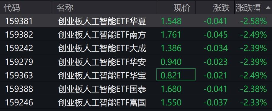 受盤面影響,創業板(ban)人工(gong)智能ETF跌超2%。