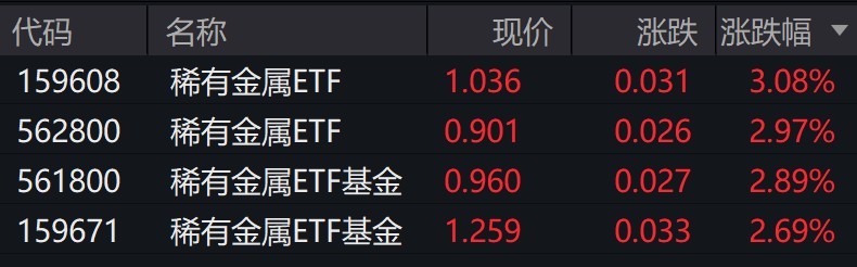 受盤面(mian)影響,稀有金屬ETF漲約3%。