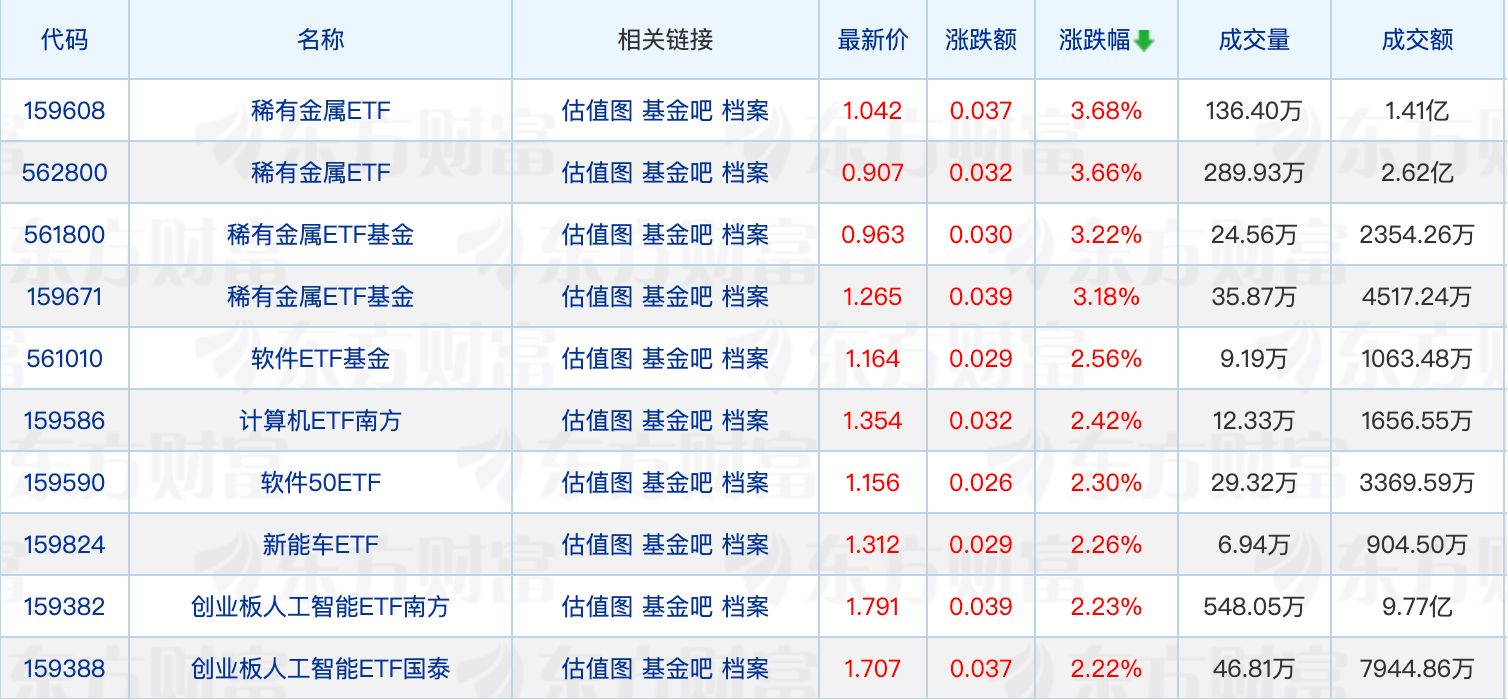 具體(ti)來看,稀有金屬(shu)ETF集體(ti)走(zou)強,最高上漲3.68%。