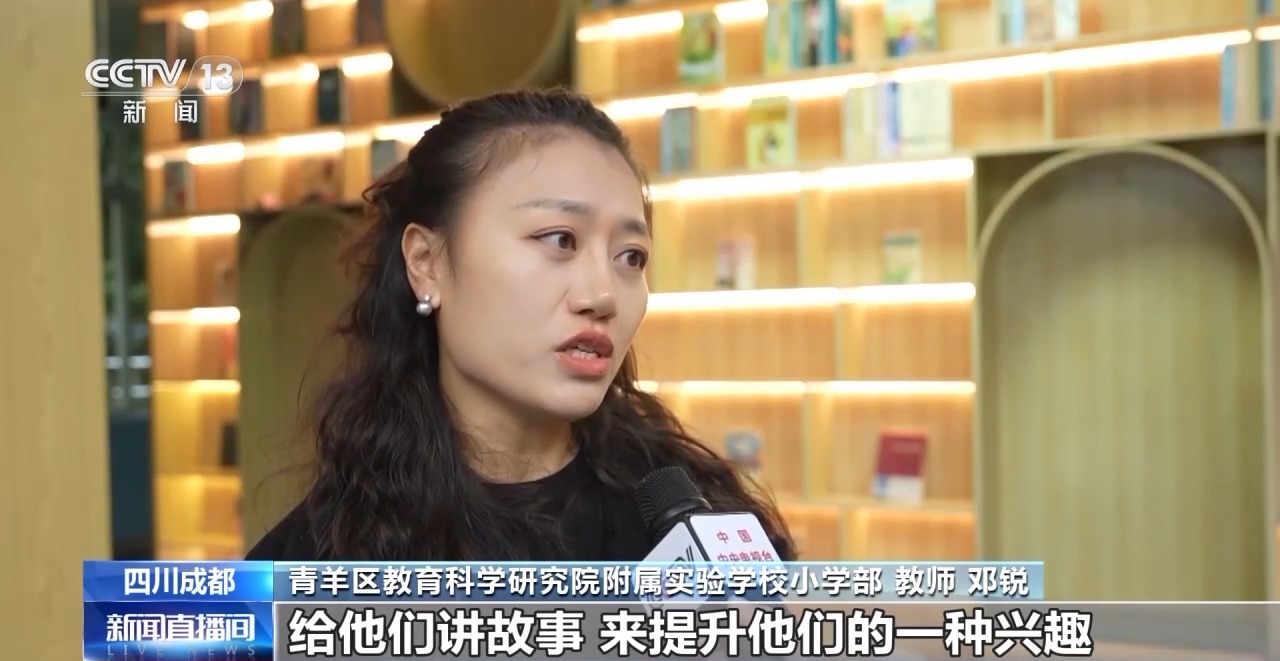青羊區教育(yu)科學(xue)研究院附屬實驗(yan)學(xue)校小學(xue)部(bu)教師(shi) 鄧(deng)銳:一到(dao)三年級的(de)孩子他們比較喜歡聽故事(shi),所以我們就(jiu)采用繪本來(lai)(lai)入手(shou),給他們講(jiang)故事(shi),來(lai)(lai)提升(sheng)他們的(de)興趣。