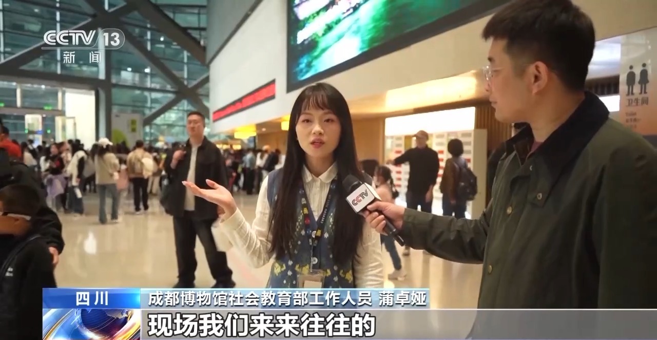 成都(dou)博(bo)物館社(she)會教育部工(gong)作人員(yuan) 蒲卓婭:我們成都秋假的首天,現場基本上都是以親子家庭為主。準(zhun)備了(le)非常多的精彩的手工活動,還有我們(men)的古蜀民居搭(da)建。