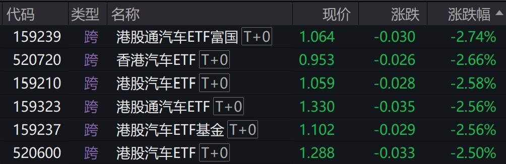 受盤面影響,港股汽車相關ETF跌(die)超2%。
