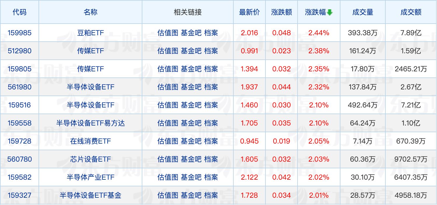 具(ju)體(ti)來(lai)看,豆(dou)粕ETF領(ling)漲2.44%。半導(dao)體(ti)概念表現活躍,圣暉集成(cheng)、龍迅股份漲停,多只半導(dao)體(ti)設備ETF走(zou)強(qiang)。