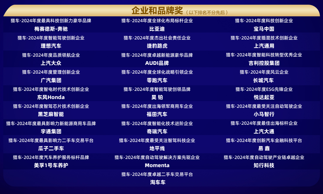 2024年11月14日,每日經濟新聞舉辦以“新質生長,智行未來”為主題的第十六屆獵車榜,與業界同仁再次見證產業發展的榮耀時刻!