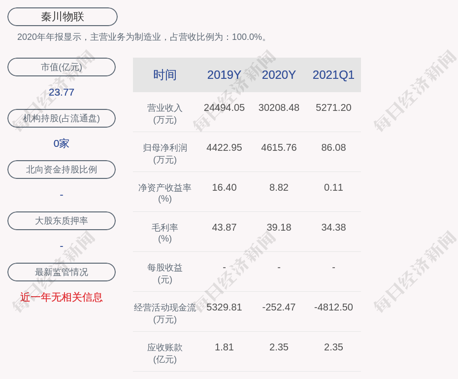 2020年年報顯示,秦川物聯的主營業務為制造業。