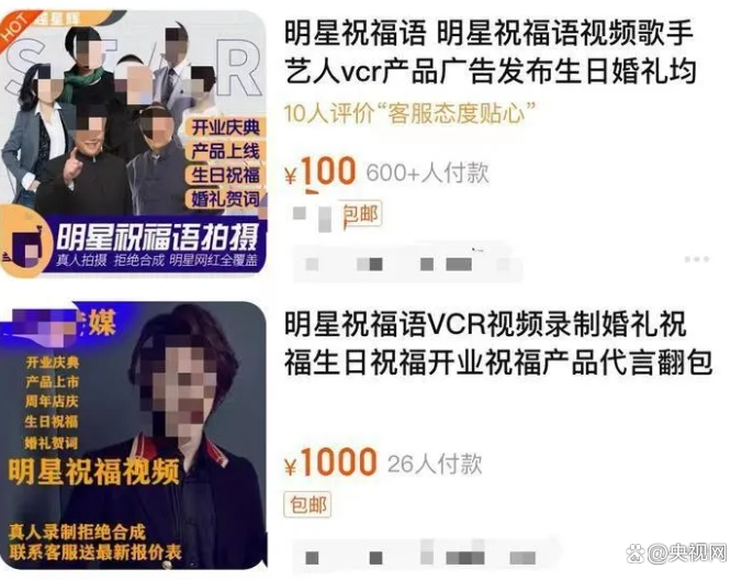 “明星、網紅喊話+跳舞、僅需258” “生日喊話祝福視頻” “定制表白舉牌驚喜拍攝”……記者在不少網絡電商平臺輸入“明星祝福視頻”這一關鍵詞進行檢索后,搜索到幾十頁的商品,大部分“祝福視頻”的標價在幾十元到幾百元不等。