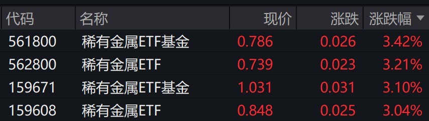 受盤面影響,跟蹤中證稀有金屬主題指數的ETF漲超3%。