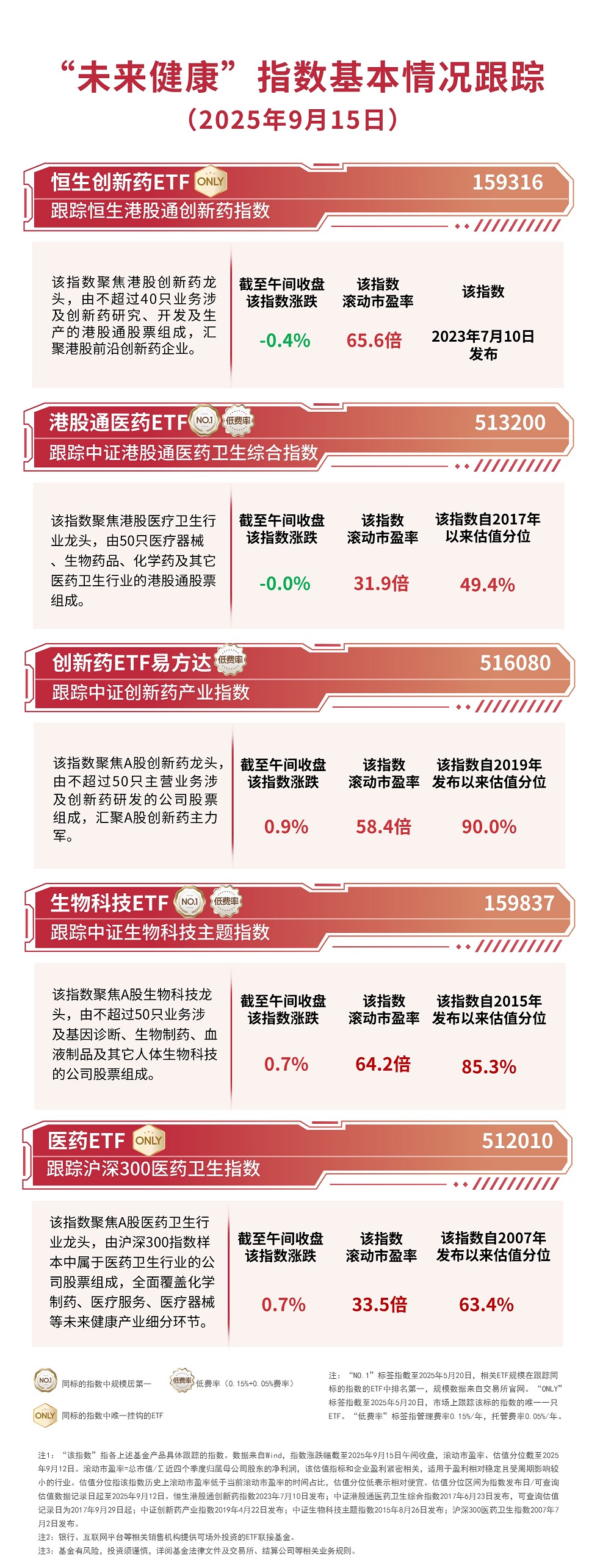 截至午間收盤,中證創新藥產業指數上漲0.9%,中證生物科技主題指數、滬深300醫藥衛生指數均上漲0.7%,中證港股通醫藥衛生綜合指數下跌0.02%,恒生港股通創新藥指數下跌0.4%。