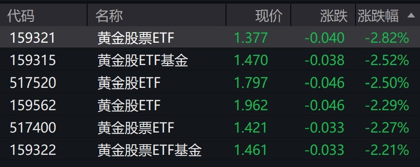 黃金股走低,湖南黃金跌超4%,老鋪黃金跌超3%,山東黃金、赤峰黃金跌超2%。