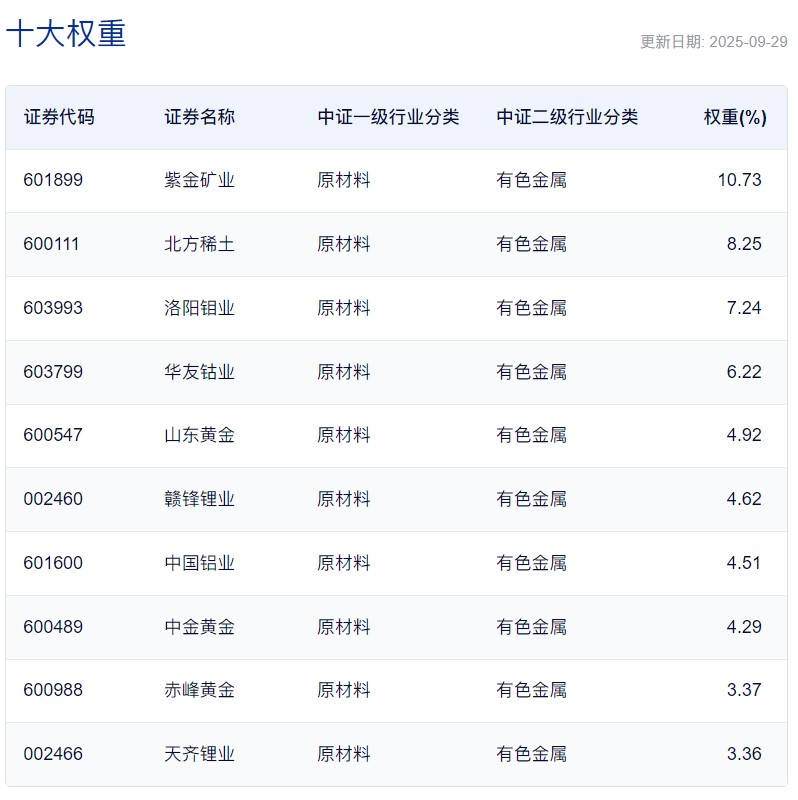 中證有色金屬礦業主題指數中【銅+黃金+鋰】占比更高,為51.8%,而中證有色指數【銅+黃金+鋰】占比為46.5%,中證有色金屬礦業指數受黃金、銅、鋰等利好催化更明顯。