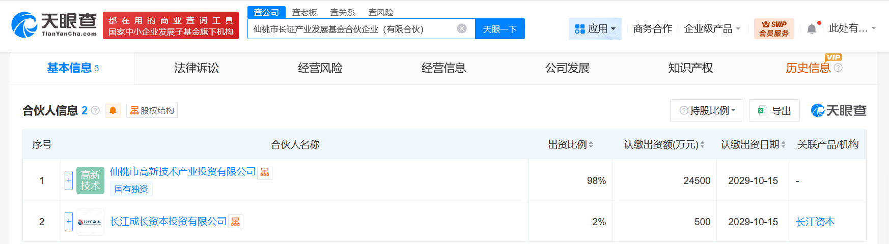 每經AI快訊,天眼查App顯示,近日,仙桃市長證產業發展基金合伙企業(有限合伙)成立,執行事務合伙人為長江成長資本投資有限公司,出資額2.5億元人民幣,經營范圍為創業投資、以自有資金從事投資活動。合伙人信息顯示,該基金由仙桃市高新技術產業投資有限公司、長江成長資本投資有限公司共同出資。