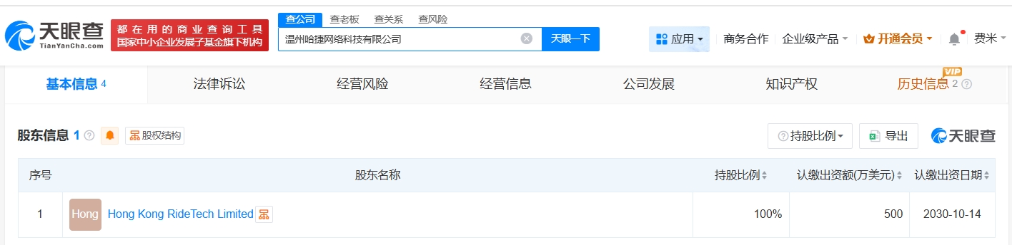 每經AI快訊,天眼查App顯示,近日,溫州哈捷網絡科技有限公司成立,法定代表人為邢成,注冊資本500萬元美元,經營范圍包括網絡技術服務、機械設備租賃、共享自行車服務等。股東信息顯示,該公司由哈啰出行旗下HongKongRideTechLimited全資持股。