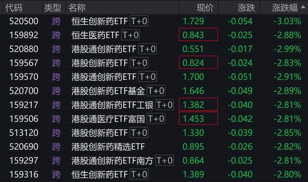 受盤面影響,多只港股創新藥相關ETF跌約3%。