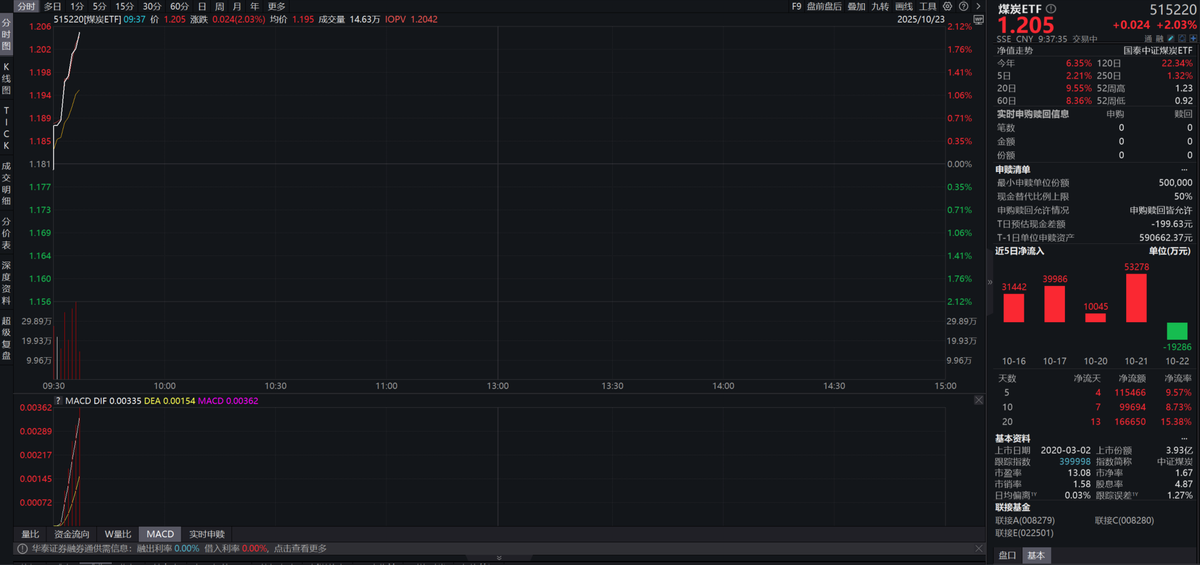 全市場唯一煤炭ETF(515220)漲超2%,當前規模超135億元,感興趣的投資者或可借道煤炭ETF(515220)捕捉煤炭板塊機遇。