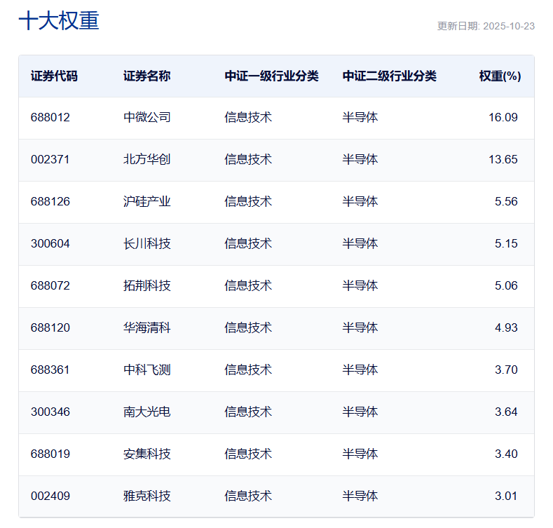 注:數據來源ifind,截至2025.10.23,半導體設備ETF規模為75.53億,在同類6只產品中排名第一。