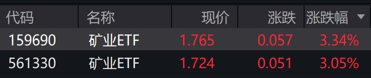 受盤面影響,礦業ETF漲超3%。