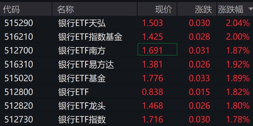 銀行股早盤持續走強,廈門銀行漲超6%,上海銀行漲超3%,招商銀行、興業銀行、工商銀行、農業銀行等漲超2%。