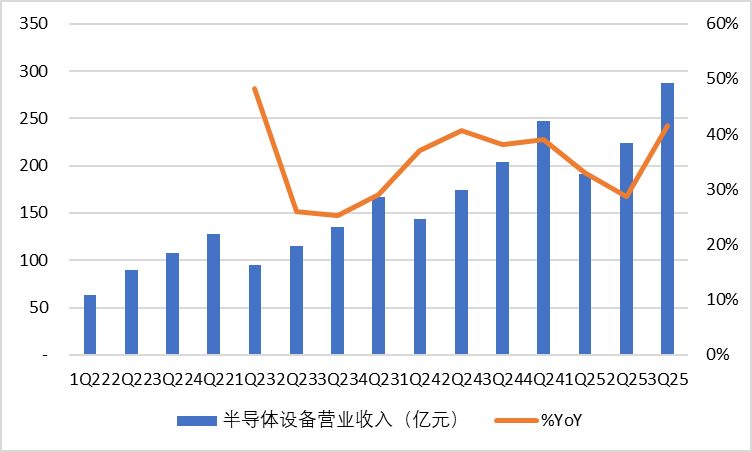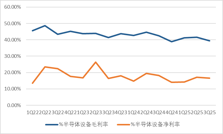 【半導體設備】2025Q3實現營業收入287.74億元,yoy+41.5%;凈利潤47.88億元,yoy+29.9%。2025Q3銷售毛利率/銷售凈利率分別為39.47%/16.64%,分別yoy-3.03pct/-1.49pct。在大國博弈愈演愈烈的如今,半導體設備的重要性顯著提升,且同步受益于先進制程擴產和存儲擴產,相關廠商半導體設備驗證和量產節奏有條不紊,有興趣的投資者可關注半導體設備ETF(159516)。