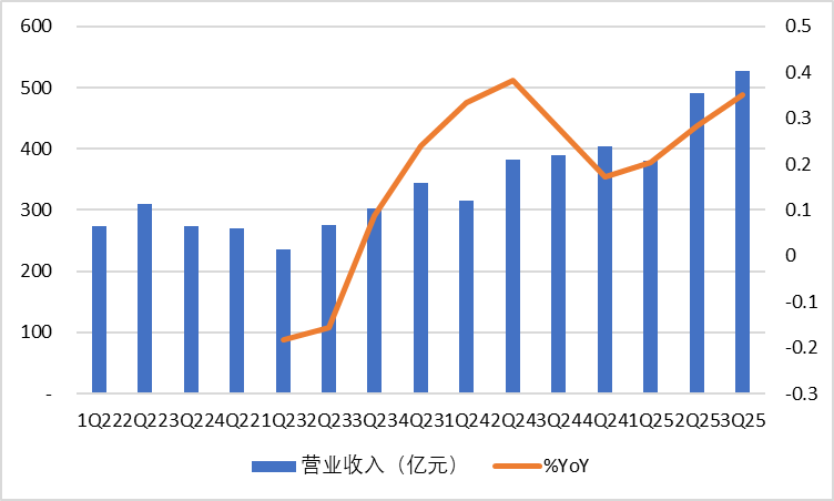2025Q3實現營業收入526.37億元,yoy+35.0%;