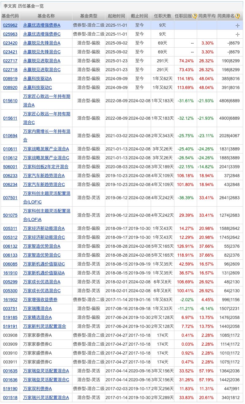 基金經理部分過往業績: