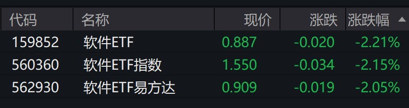 受盤面影響,軟件ETF跌超2%。