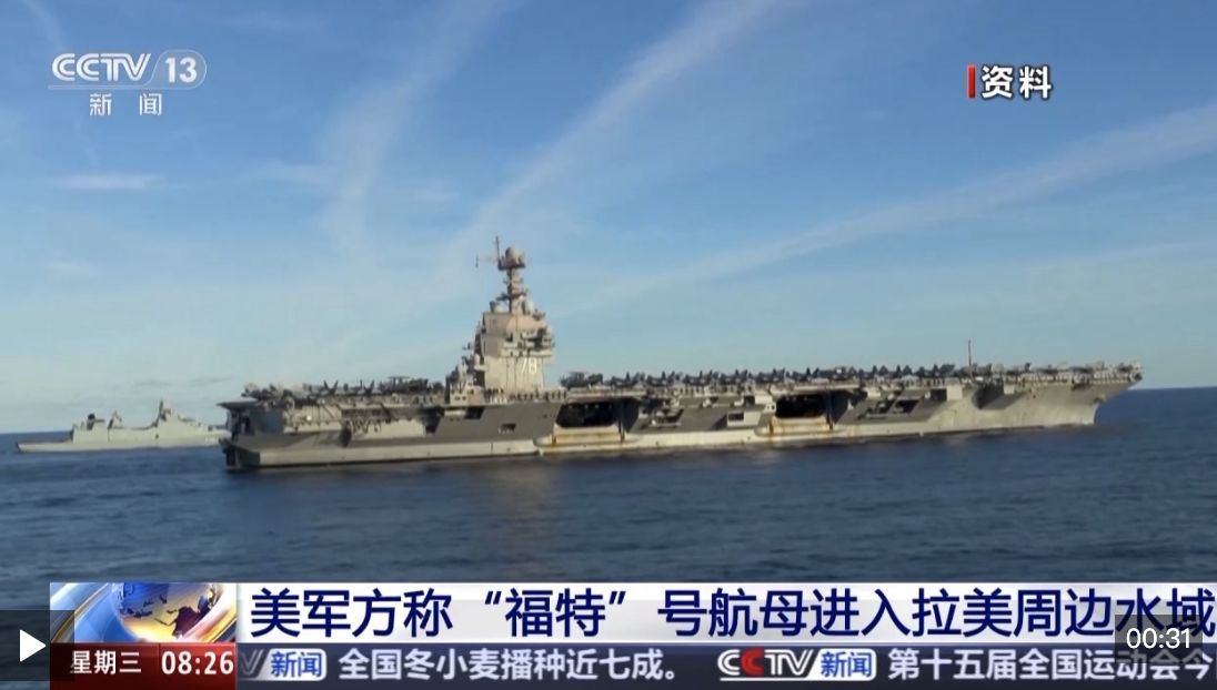 央視新聞消息,美國海軍11日發表聲明稱,美軍最大航空母艦“福特”號率領的航母打擊群當天抵達美軍南方司令部責任區,部署在加勒比海。目前,美軍在加勒比地區集結的兵力,已是幾十年來規模最大的。