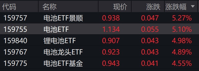 受盤面影響,電池相關ETF漲約5%。