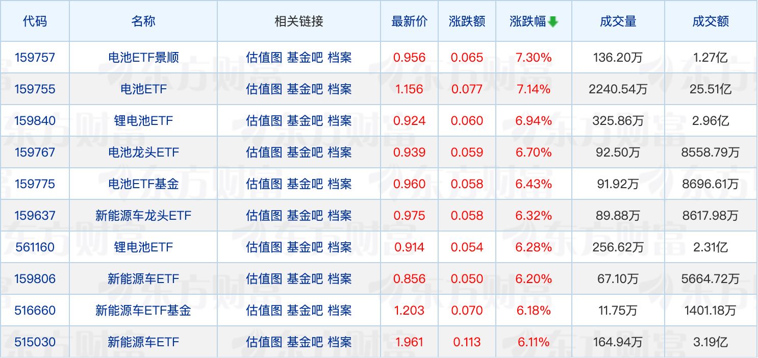 ETF漲跌幅方面,電池相關ETF漲約7%。