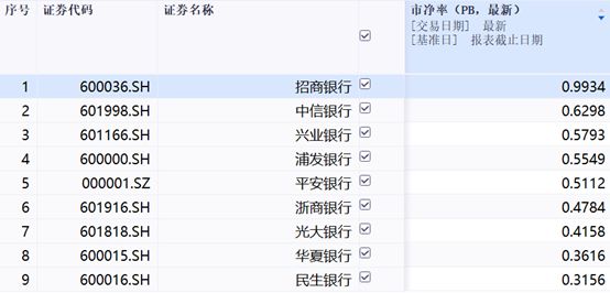股份制銀行中,招商銀行PB最高,為0.99,其次是中信銀行,為0.63,興業銀行以0.58排第三位。
