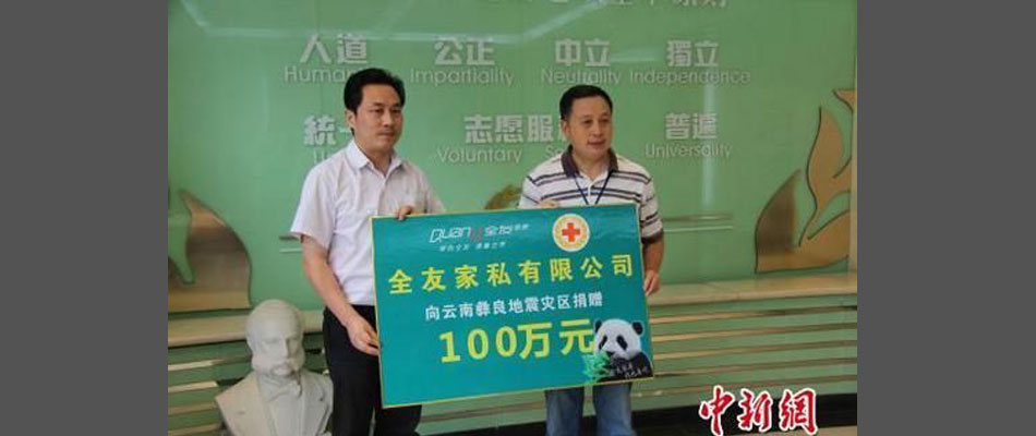 四川全友家私:愛心企業通過四川省紅十字會向云南彝良地震災區捐款100萬元,這是云南地震后,省紅十字會接收到的第一筆企業定向捐款 。【詳細】