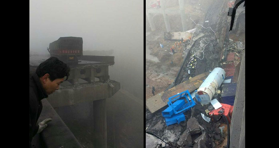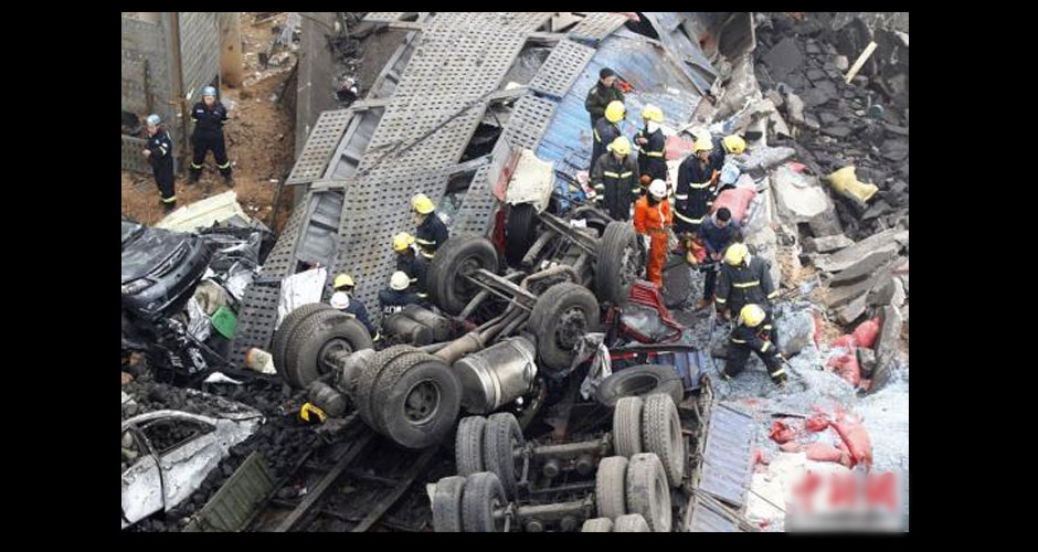 24日5時(shi)30左右(you),哈爾濱機場高速由江南往(wang)江北方向,即將進入陽(yang)明(ming)灘大橋(qiao)主橋(qiao)的最后(hou)一段被四輛(liang)重載貨車(che)壓塌(ta),四輛(liang)貨車(che)沖下(xia)橋(qiao)體。據新華網報道,垮塌(ta)事故已造成3人(ren)死亡(wang)、5人(ren)受(shou)傷。